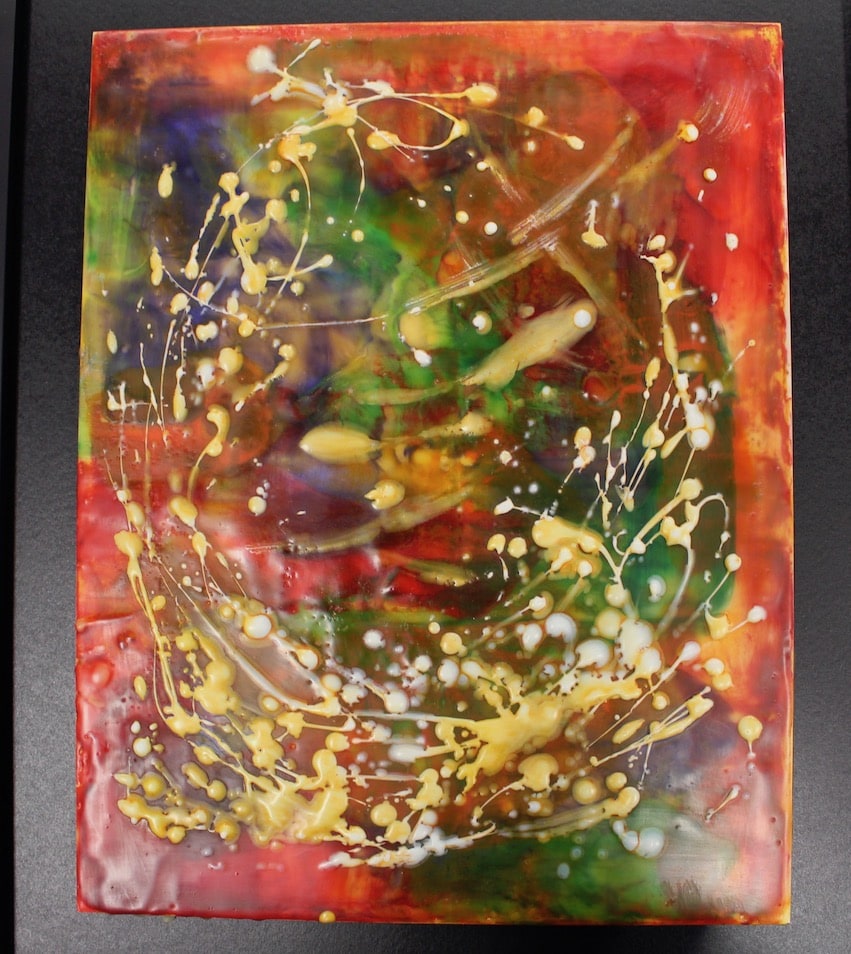 This close-up of Elizabeth Davis' "Fish Tank" reveals the layers evident in the encaustic process.