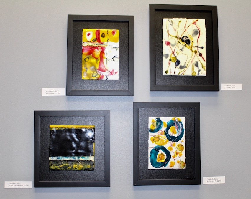 Below, more encaustic works by Elizabeth Davis, on display at Peoria Magazines.